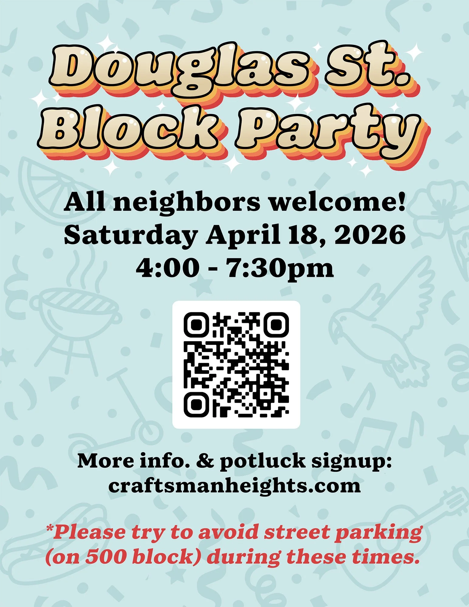 Come out and join the inaugural Douglas St. Block Party on Saturday April 18th from 4-7:30pm.